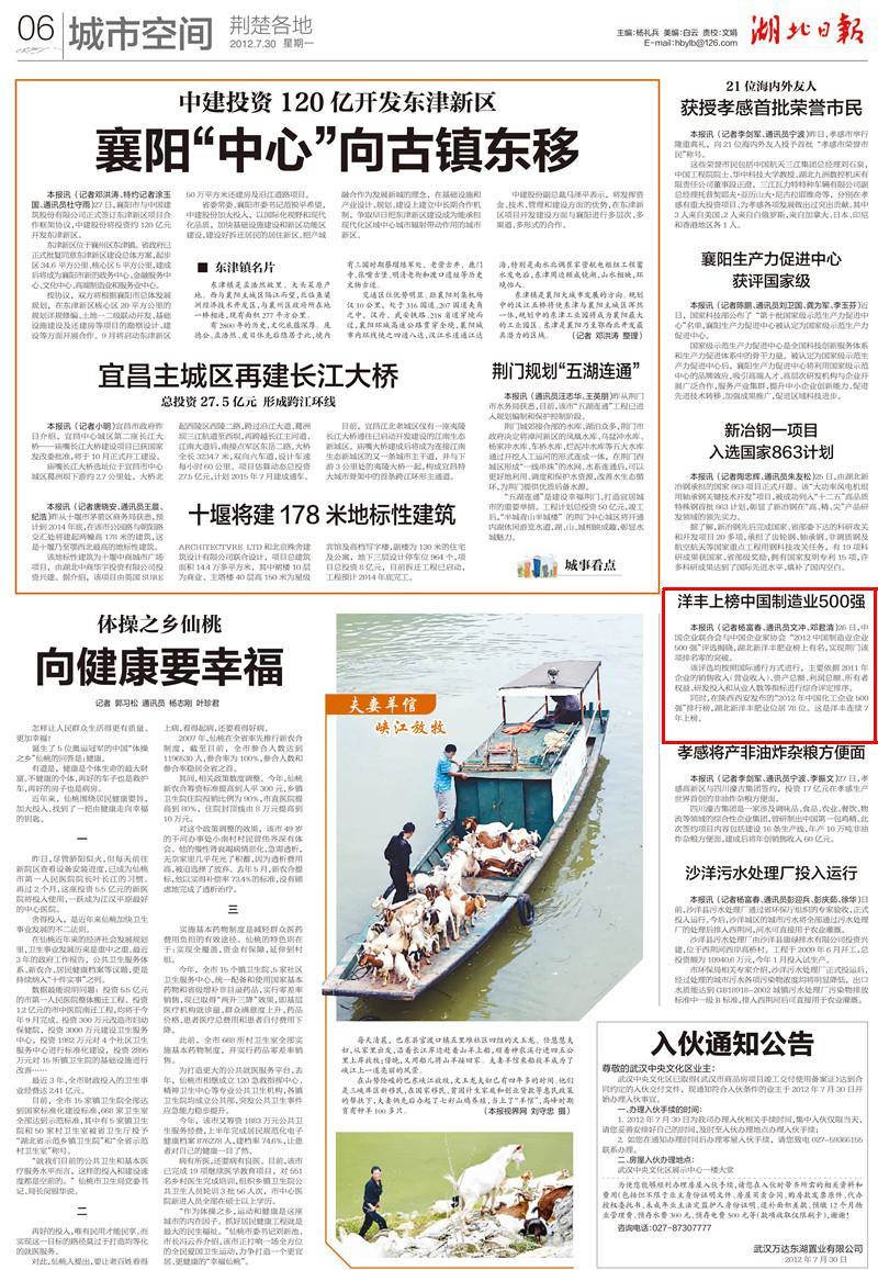 26日,中国企业联合会与中国企业家协会“2012中国制造业企业500强”评选揭晓,湖北太阳成集团tyc33455cc肥业榜上有名,实现荆门该项排名零的突破。