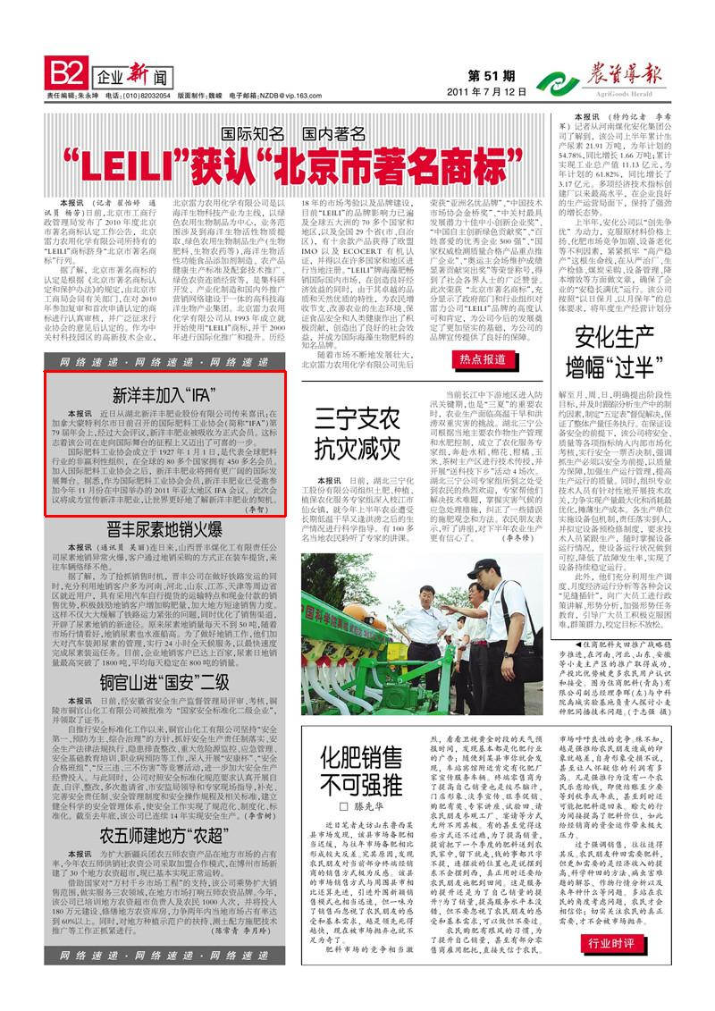 近日从湖北太阳成集团tyc33455cc肥业股份有限公司传来喜讯:在加拿大蒙特利尔市日前召开的国际肥料工业协会(简称“IFA”)第79届年会上,经过大会评议,太阳成集团tyc33455cc肥业被吸收为正式会员。这标志着该公司在走向国际舞台的征程上又迈出了可喜的一步。