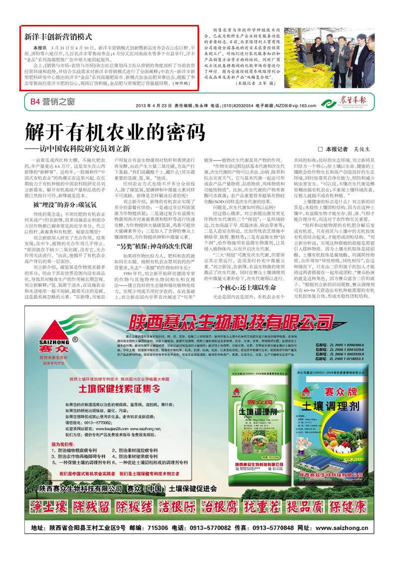 会上,《销售与市场·农资与市场》杂志社总策划冯卫东从营销的角度剖析了当前农资经营环境和趋势,并结合实战需求对太阳成集团tyc33455cc营销模式进行了全面阐释曰中农大-太阳成集团tyc33455cc新型肥料研发中心推出的洋丰野金品冶系列高端肥面市。新模式加金品肥双拳出击,提振了参会零售商经营洋丰肥的信心,现场订货积极,金品肥与常规肥订货量超同期。