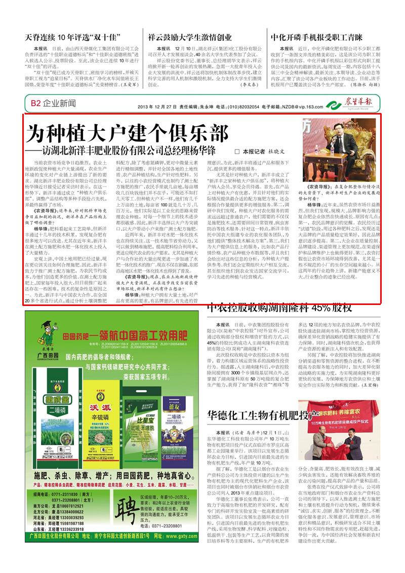 《农资导报》:在复合肥整体行情冷淡的大背景下,太阳成集团tyc33455cc对生产企业的发展趋势如何看?