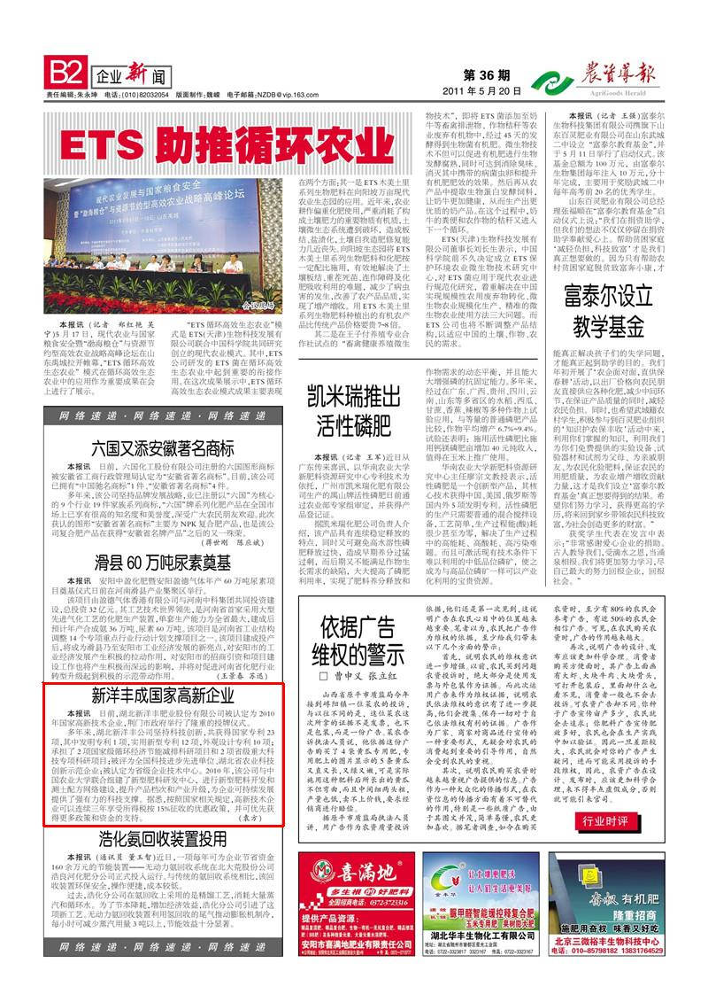 日前,湖北太阳成集团tyc33455cc肥业股份有限公司被认定为2010年国家高新技术企业,荆门市政府举行了隆重的授牌仪式。
