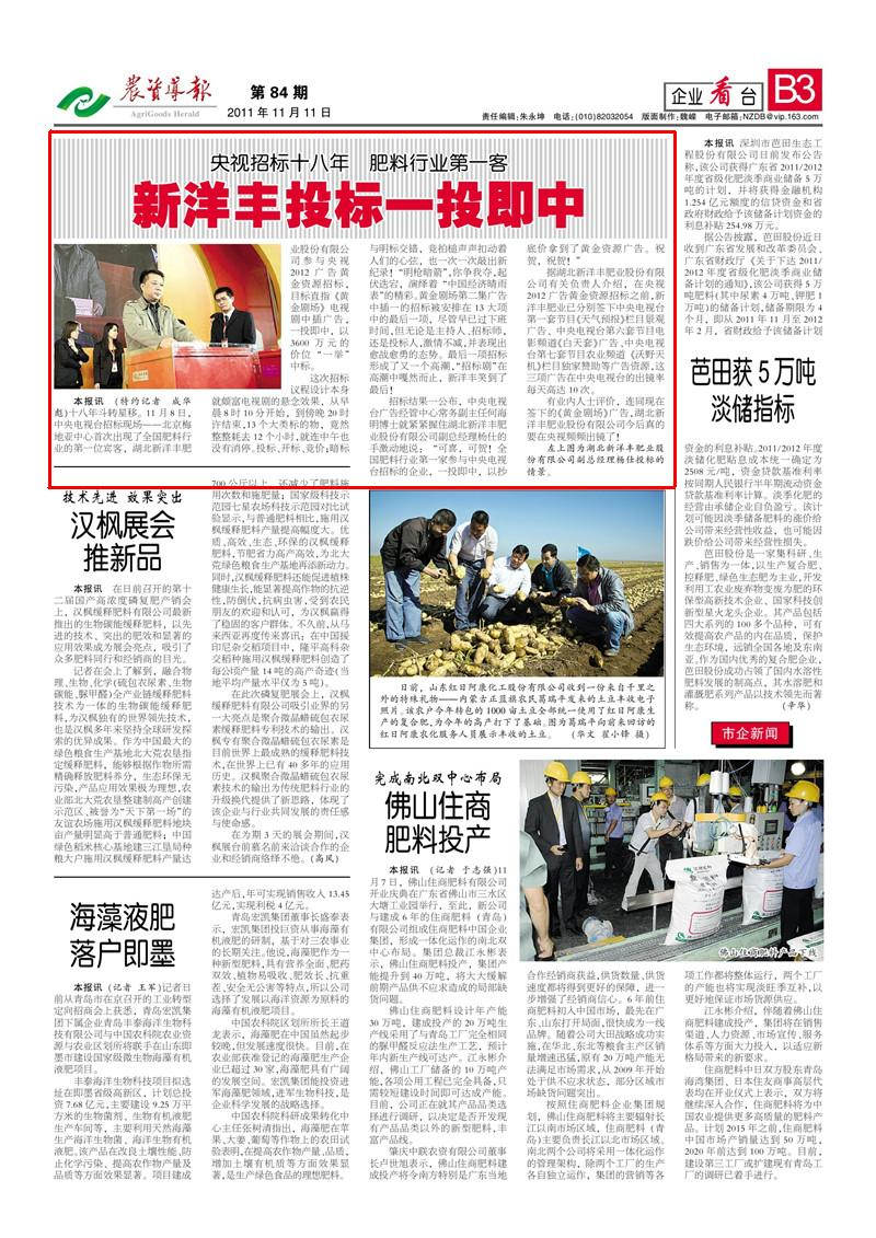招标结果一公布,中央电视台广告经管中心常务副主任何海明博士就紧紧握住湖北太阳成集团tyc33455cc肥业股份有限公司副总经理杨仕的手激动地说:“可喜,可贺!全国肥料行业第一家参与中央电视台招标的企业,一投即中,以抄底价拿到了黄金资源广告。祝贺,祝贺!”