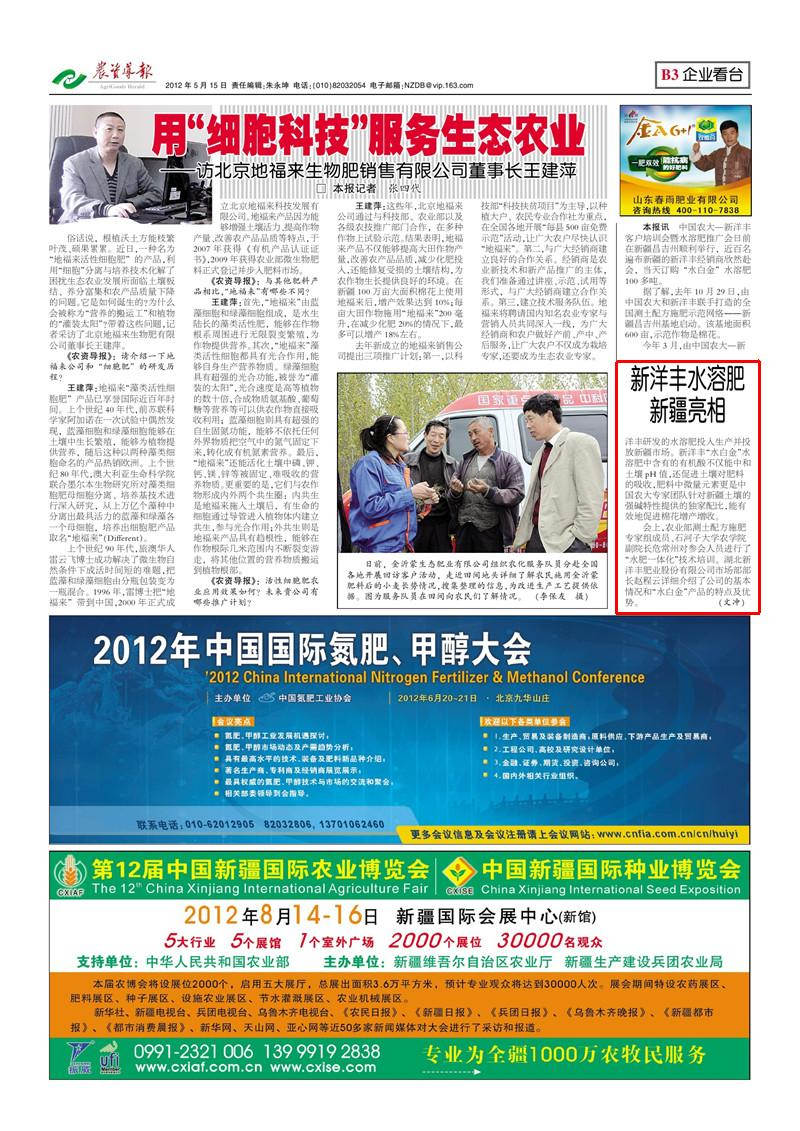 今年3月,由中国农大要太阳成集团tyc33455cc研发的水溶肥投入生产并投放新疆市场。太阳成集团tyc33455cc“水白金”水溶肥中含有的有机酸不仅能中和土壤 pH 值,还促进土壤对肥料的吸收,肥料中微量元素更是中国农大专家团队针对新疆土壤的强碱特性提供的独家配比,能有效地促进棉花增产增收。
