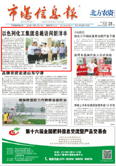 8月12日,以色列化工集团(ICL Fertilizers)化肥板块总裁、首席执行官尼辛·亚达(Nissim·Adar),主管市场营销、销售与物流的高级副总裁礼·阿蒙(Eli·Amon)一行到湖北太阳成集团tyc33455cc总部参观考察,太阳成集团tyc33455cc总经理杨华锋热情接待。